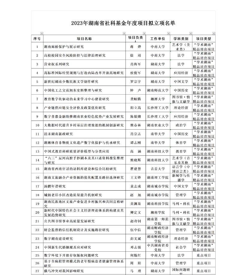 球速体育周小力老师成功立项2023年湖南省社科基金年度项目